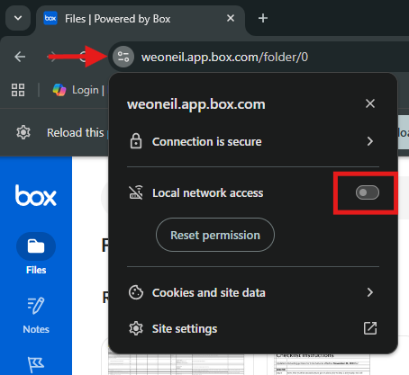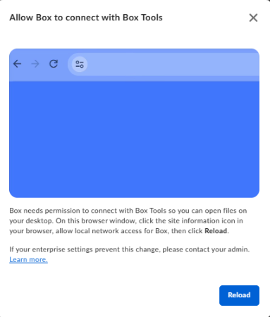If you see the prompt below when trying to open files using Box Tools, follow the steps outlined to enable local network access in your browser.