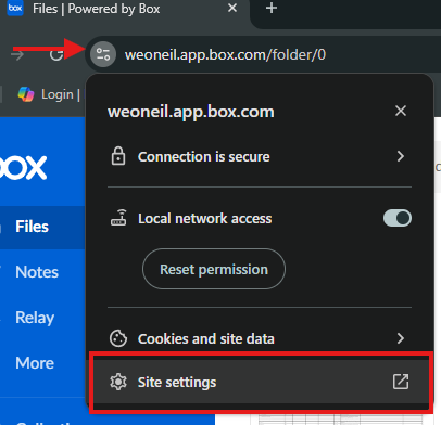 - On the address bar (top left beside the URL), click the Site Information icon (ⓘ or padlock icon).