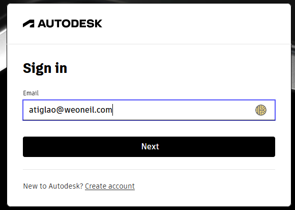 Enter your Primary Email Address (e.g., @weoneil.com or @coreservices.build) and click Next to proceed.